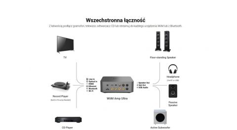 Wiim Amp Ultra jest od dawna oczekiwaną, nową wersją niezwykle popularnego odtwarzacza sieciowego WiiM Ultra. Producent wyposażył player we wzmacniacz, który rozszerza funkcjonalność urządzenia.